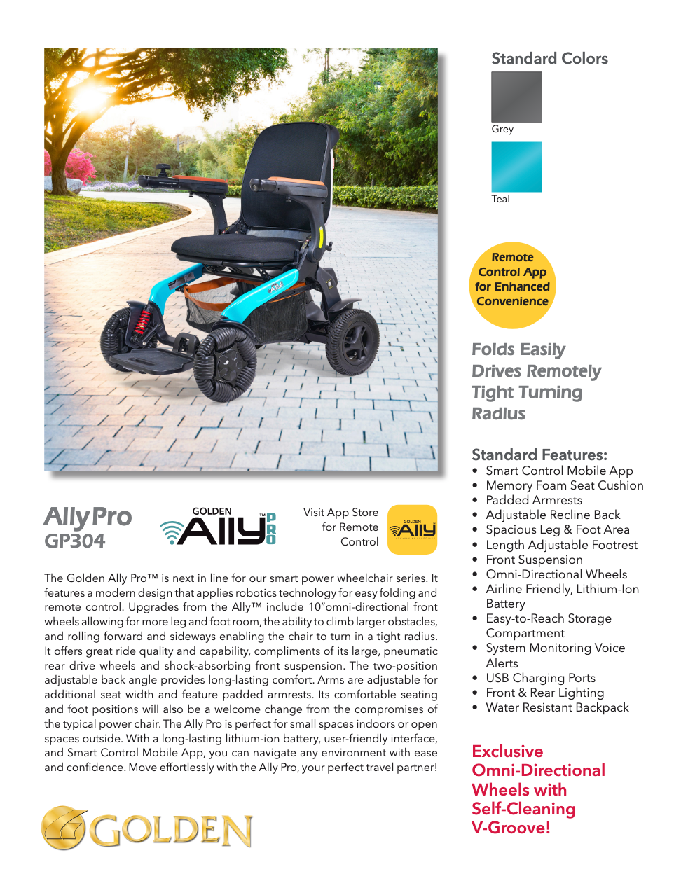 Taking innovation further, the Ally Pro features omni-directional front wheels for unmatched maneuverability in tight spaces, more foot and leg room, and enhanced obstacle-climbing ability. Its effortless remote folding and advanced control system make it a powerhouse for everyday use and travel.