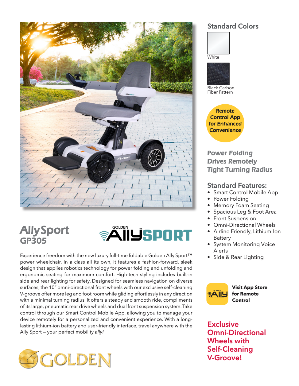 Designed for full-time luxury mobility, the Ally Sport adds exclusive self-cleaning V-Groove omni-directional wheels, front suspension for smoother rides, and premium memory foam seating for all-day comfort. Its sleek design, app integration, and airline-friendly lithium battery redefine convenience and style.