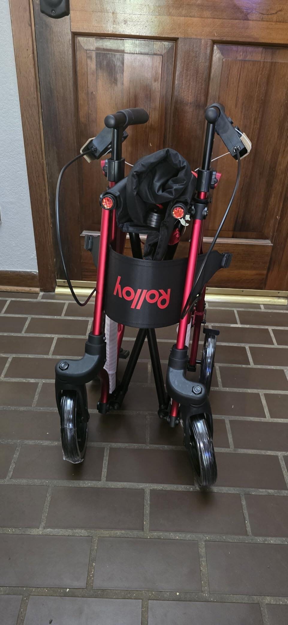 Excellent compact rollator walker. Love how easily and reliably I can collapse, put in back seat of car, and take out and set up. After using a standard 2 wheel walker and a bigger more comfortable heavy duty rollator for a couple years, the Rolloy has become my everyday standard. I use a flexible cane holder to help secure cups on the seat instead of a cup holder, and I have found that I can put a fabric bag over the handles on the seat to secure larger items that don’t fit in the front bag.