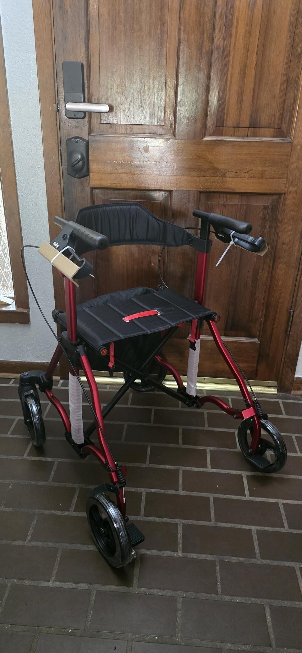 Very good rollator. Sturdy and solid. The best part is that it is very easy to collapse it and place it in the car. It is very lightweight compared to my other one.