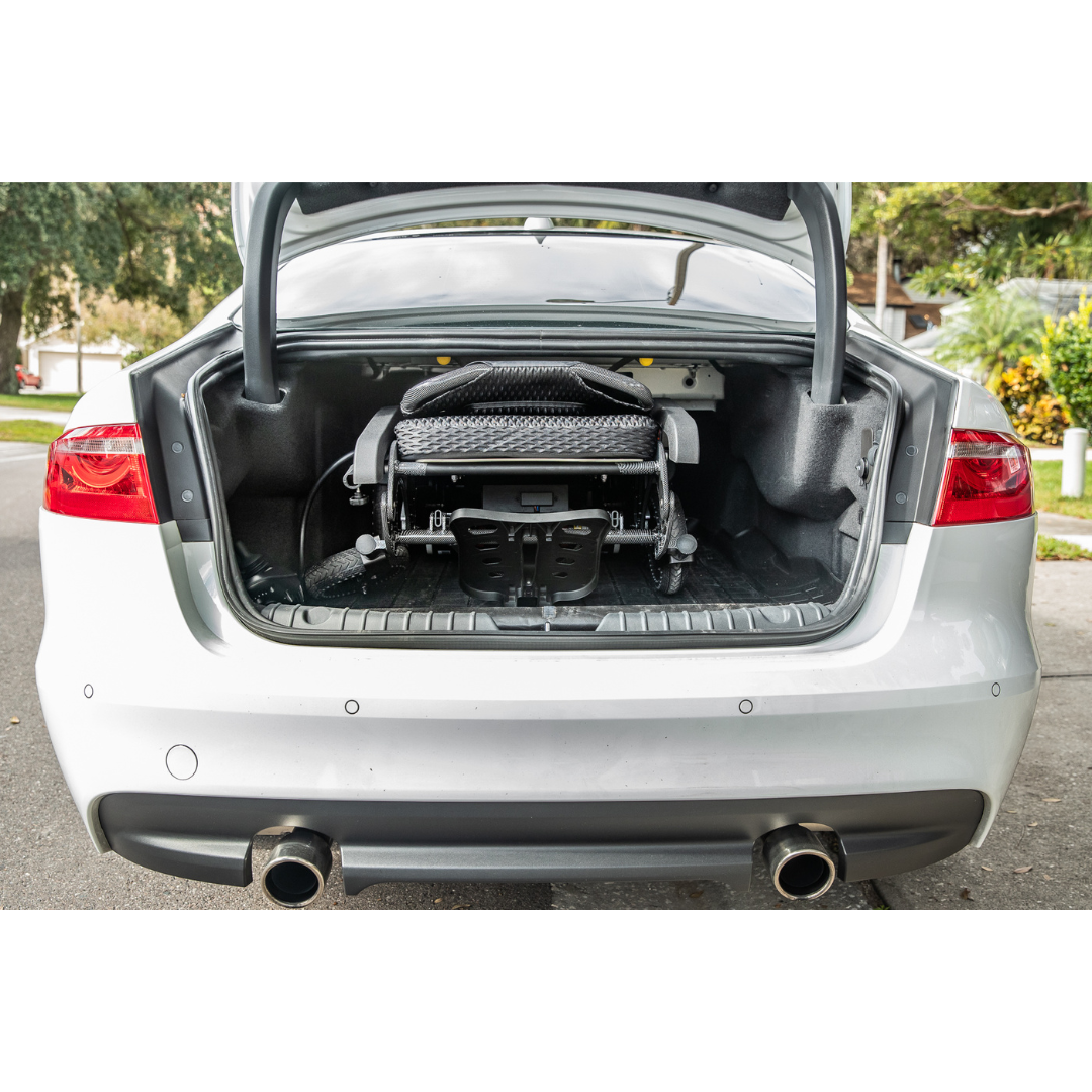 Experience unmatched freedom with the Miracle Mobility Freedom Palladium 8500 — a lightweight, foldable power wheelchair designed for all-day mobility. Powered by dual 250W magnetic brushless motors (500W total) and a long-lasting 24V/10Ah lithium-ion battery, it travels up to 15 miles on a single charge at speeds up to 3.75 mph. Weighing just 55 lbs (58 lbs with battery) and folding in seconds to a compact 16” × 30” × 24”, it fits easily into most car trunks for effortless transport. Featuring intelligent electromagnetic brakes, five speed settings, and a sturdy aluminum frame supporting up to 265 lbs, the Palladium 8500 combines safety, comfort, and portability for life on the go.